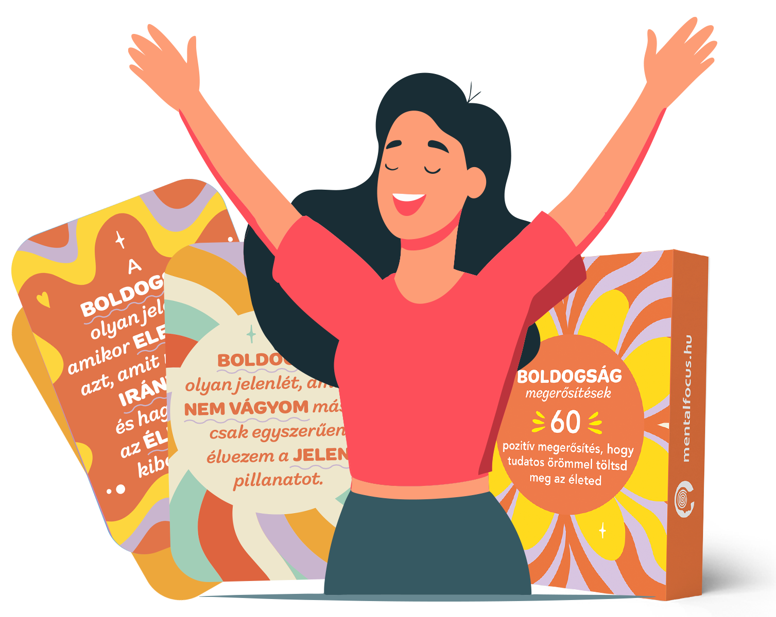 A 60 Boldogság megerősítés kártya 60 olyan tudatos boldogság gyakorlatot tartalmaz, amikről tudományosan is bizonyított, hogy a leghatékonyabb boldogságfokozó stratégiák.