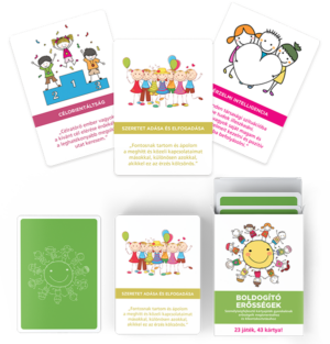 A Boldogító erősségek kártyajáték azoknak a gyerekeknek készült, akiket szüleik boldognak, kiegyensúlyozottnak, sikeresnek és elégedettnek szeretnének látni.